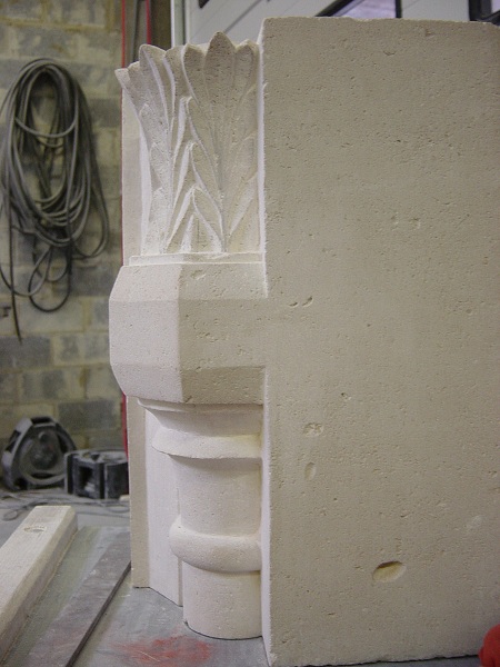 Elément d’un pinacle restauré en pierre de France sur l’Eglise Saint Martin à Liège