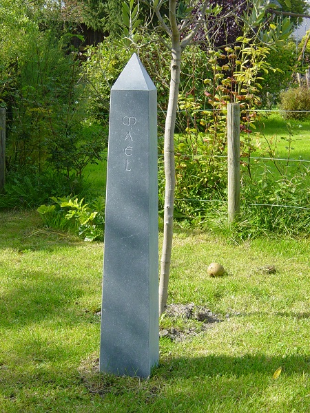 Obélisque en pierre bleue de Condroz gravé